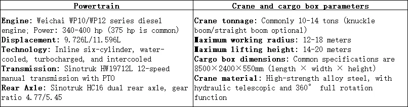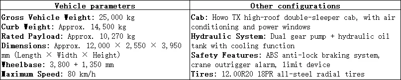 حمل کننده جرثقیل سوار کامیون Sinotruk Howo 6×4 (جرثقیل سواری) دارای پارامترهای اصلی زیر است: