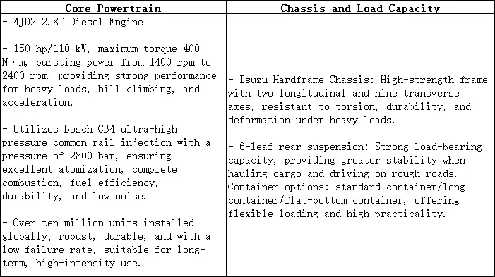 نسخه دستی RE-MAX 2.8T 2026 دارای مزایای اصلی موتور دیزل ایسوزو 4JD2، شاسی قوی، کیفیت سرمایه گذاری مشترک و قیمت مقرون به صرفه است. این خودرو بر قابلیت اطمینان، قدرت، بهره وری سوخت، ظرفیت حمل و دوام تاکید دارد و آن را به انتخابی با ارزش در میان وانت بارهای کاربردی تبدیل می کند.